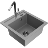 Die Spüle besteht aus hochwertigem Granit. Es ist eine elegante und vor allem praktische Ergänzung zu jeder Küche, unabhängig von ihrem Stil. Hohe Qualität und Granitdauer sorgen für eine langjährige Nutzung.