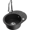 Die Spüle besteht aus hochwertigem Granit. Es ist eine elegante und vor allem praktische Ergänzung zu jeder Küche, unabhängig von ihrem Stil. Hohe Qualität und Granitdauer sorgen für eine langjährige Nutzung.