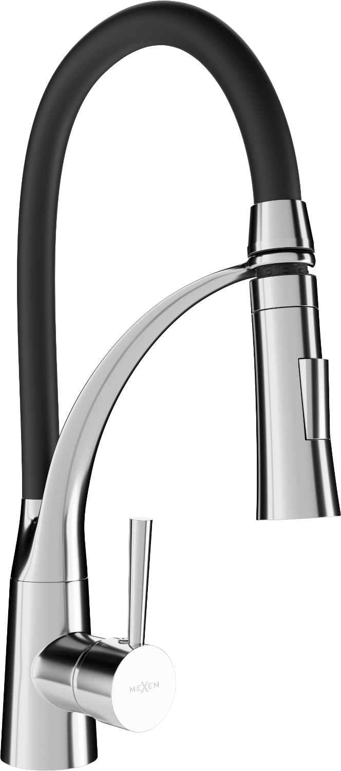 Batterien mit einem Silikonauslauf und einer Messingunterstützung sind eine praktische Lösung in der Küche. Ihre Elastizität ermöglicht eine 360 ° -Drotation, die definitiv die Spülung der Gefäße, die Reinigung der Spüle und das Füllen mit einer Vase oder einem Topf erleichtert.