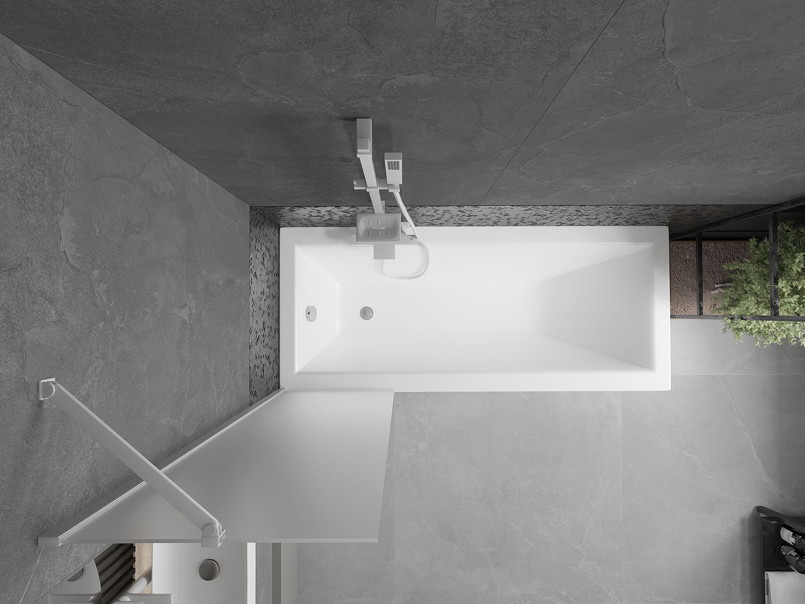 Effektiver Schutz gegen Wasser beim Baden. Der Bildschirm hat Dichtungen, die sich perfekt an das Glas des Glass und an der Badewanne der Badewanne anpassen. Eine funktionale Lösung, um Sicherheit und einfache Wartung zu gewährleisten.