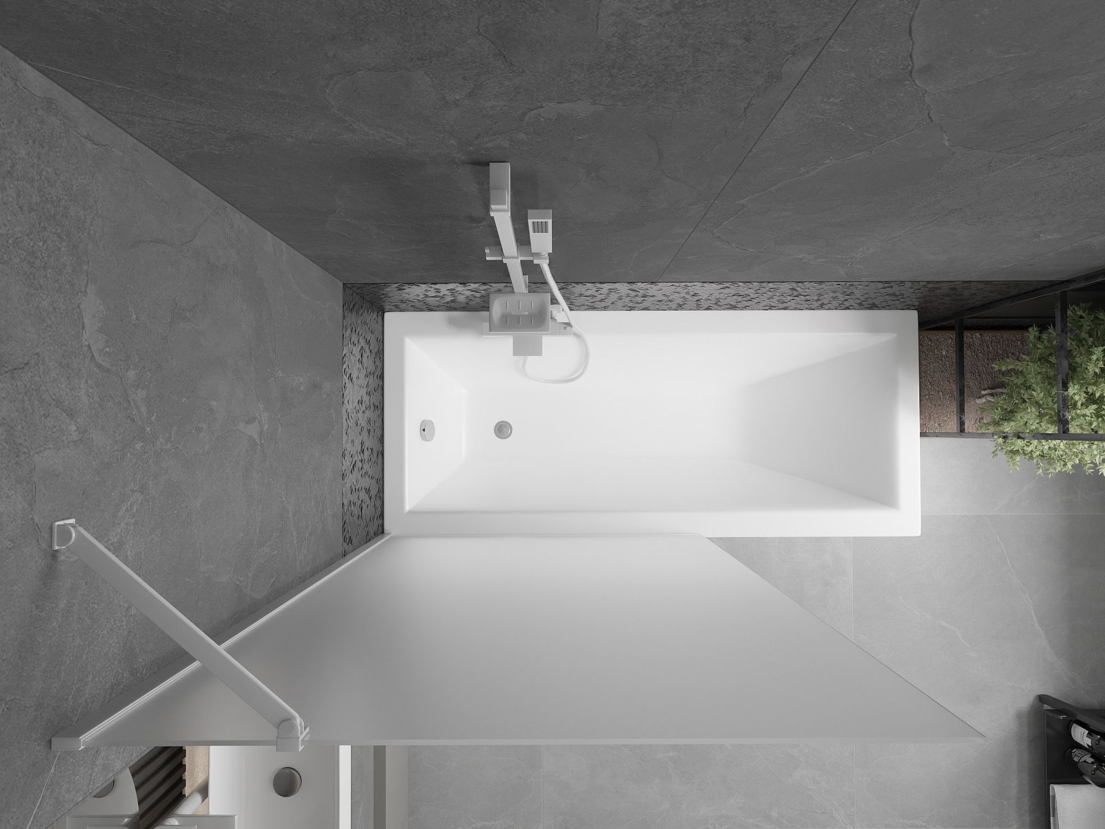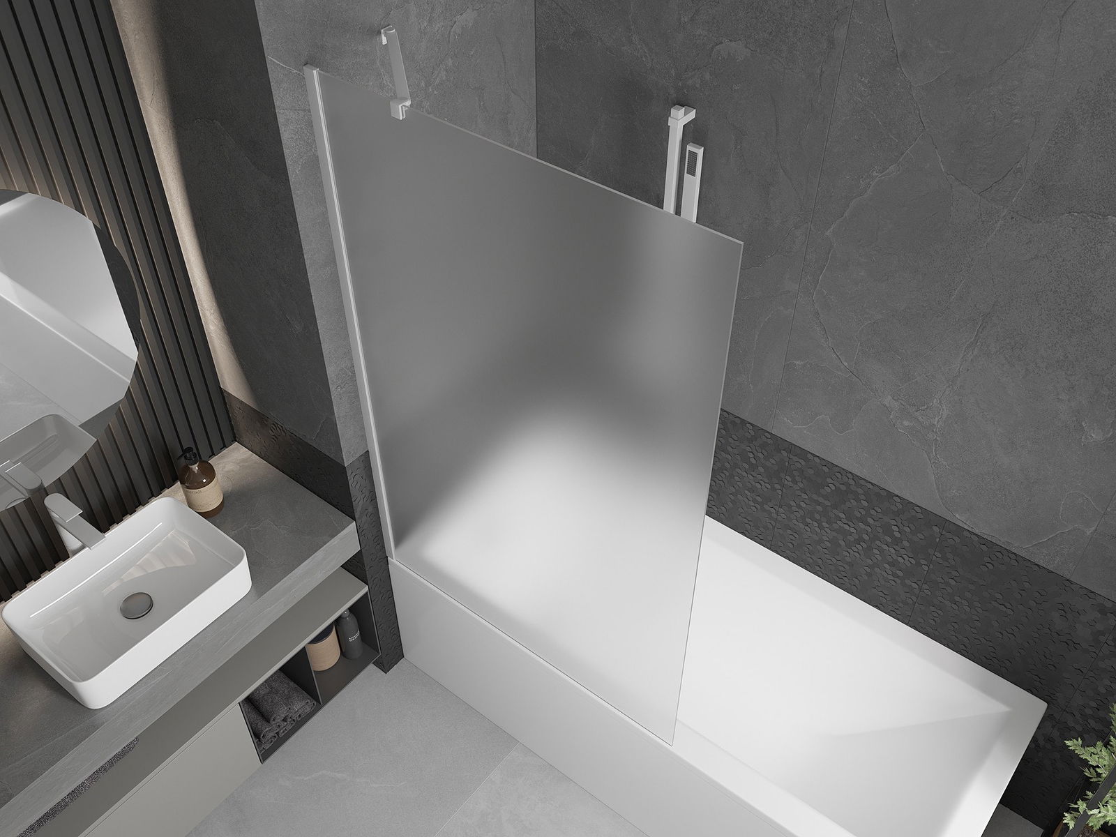 Effektiver Schutz gegen Wasser beim Baden. Der Bildschirm hat Dichtungen, die sich perfekt an das Glas des Glass und an der Badewanne der Badewanne anpassen. Eine funktionale Lösung, um Sicherheit und einfache Wartung zu gewährleisten.