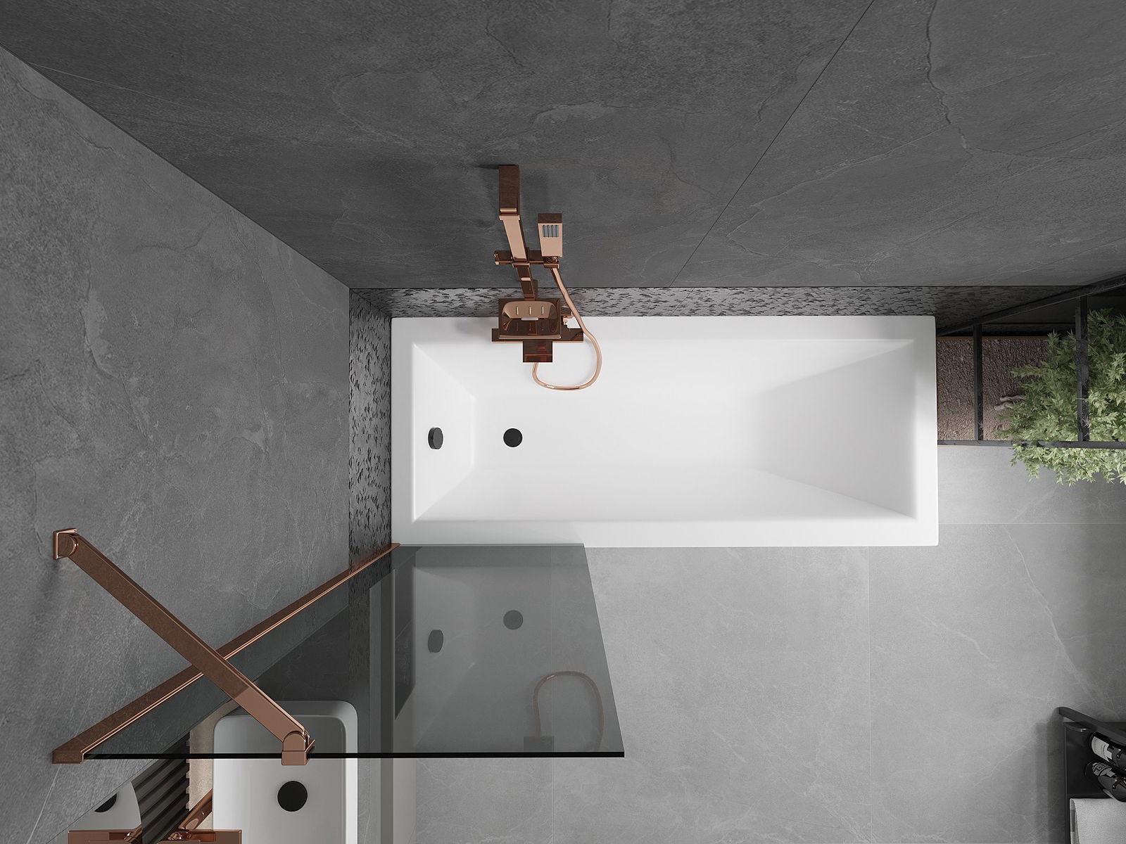 Effektiver Schutz gegen Wasser beim Baden. Der Bildschirm hat Dichtungen, die sich perfekt an das Glas des Glass und an der Badewanne der Badewanne anpassen. Eine funktionale Lösung, um Sicherheit und einfache Wartung zu gewährleisten.