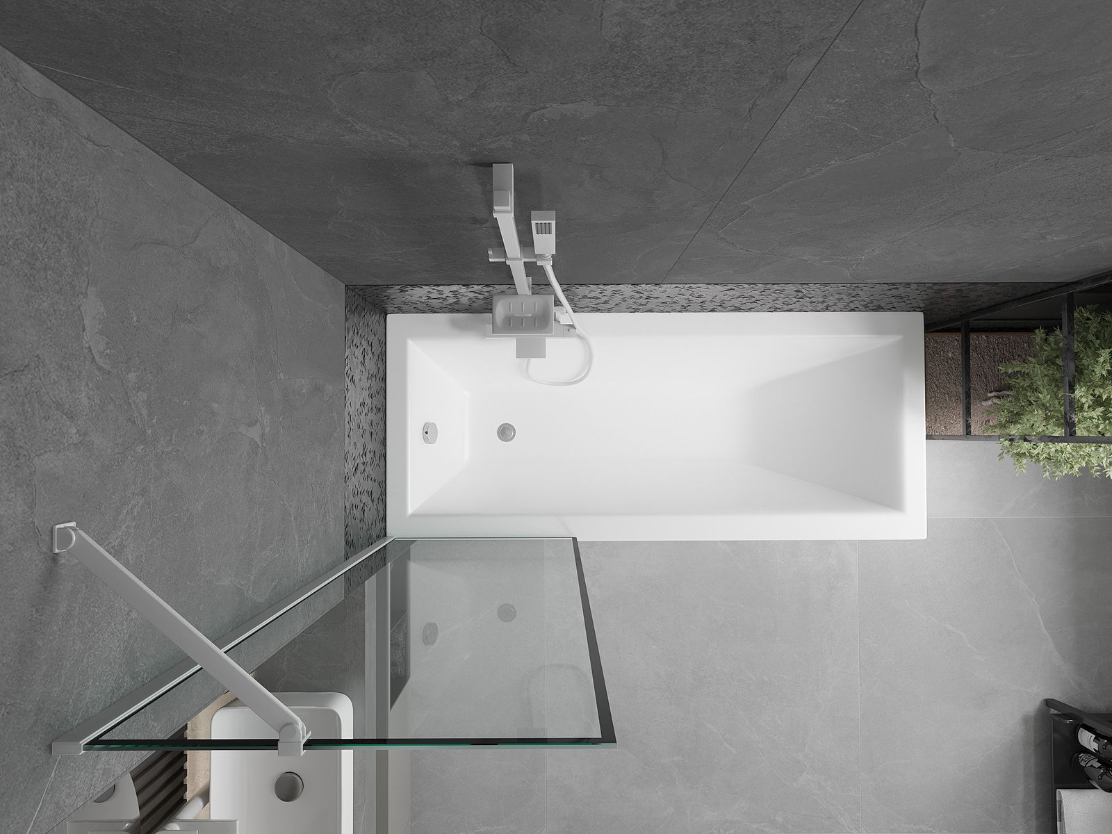 Effektiver Schutz gegen Wasser beim Baden. Der Bildschirm hat Dichtungen, die sich perfekt an das Glas des Glass und an der Badewanne der Badewanne anpassen. Eine funktionale Lösung, um Sicherheit und einfache Wartung zu gewährleisten.