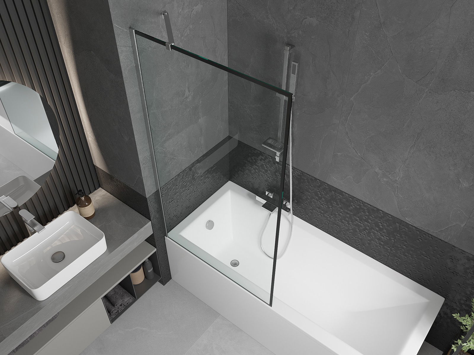 Mexen Next Badewannenabtrennung 1-flügelig 90 x 150 cm, schwarzer Rahmen, Chrom - 895-090-000-00-70-01