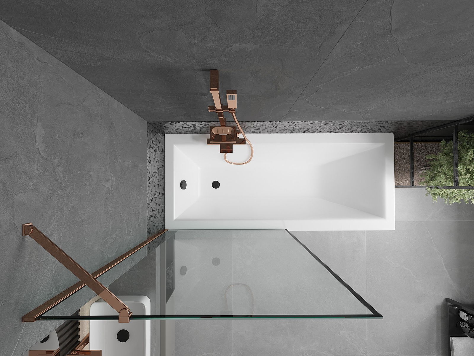 Mexen Next Badewannenabtrennung 1-flügelig 90 x 150 cm, schwarzer Rahmen, Roségold - 895-090-000-00-70-60