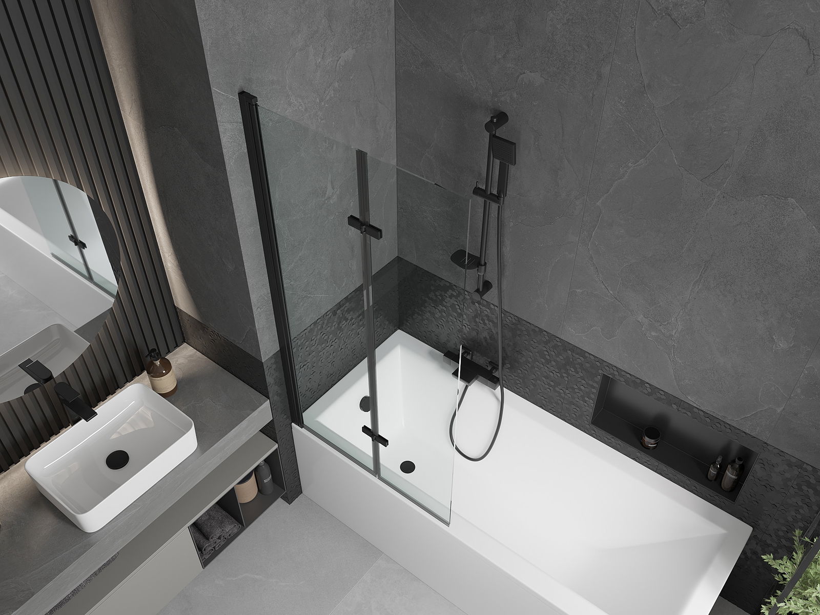 Der Bildschirm besteht aus zwei Flügeln mit der Möglichkeit der Faltung. Diese Lösung spart mehr Platz im Badezimmer und ermöglicht es Ihnen, den verbleibenden Platz frei zu nutzen, wenn wir den Badebereich nicht nutzen.
