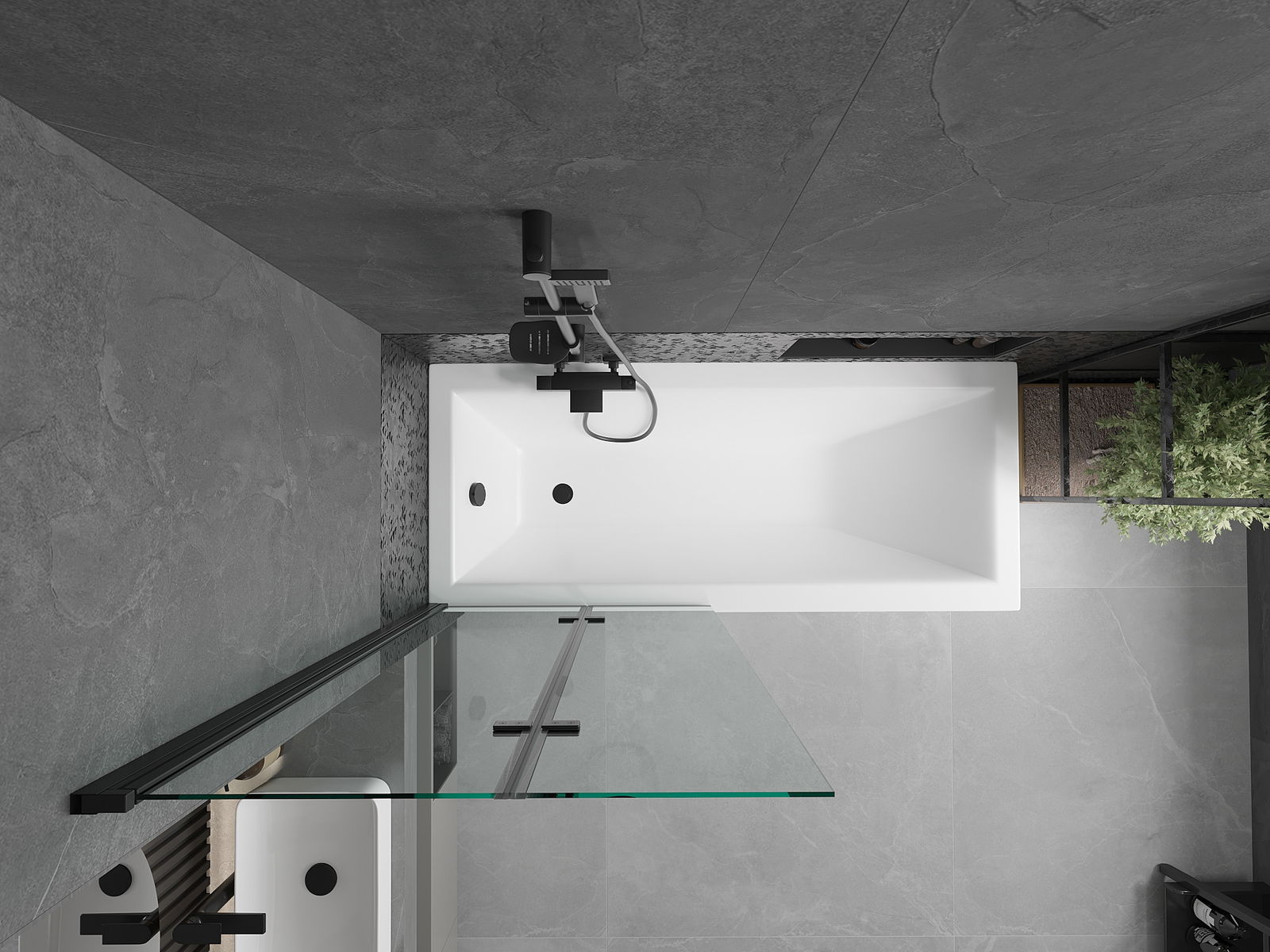 Effektiver Schutz gegen Wasser beim Baden. Der Bildschirm hat Dichtungen, die sich perfekt an das Glas des Glass und an der Badewanne der Badewanne anpassen. Eine funktionale Lösung, um Sicherheit und einfache Wartung zu gewährleisten.