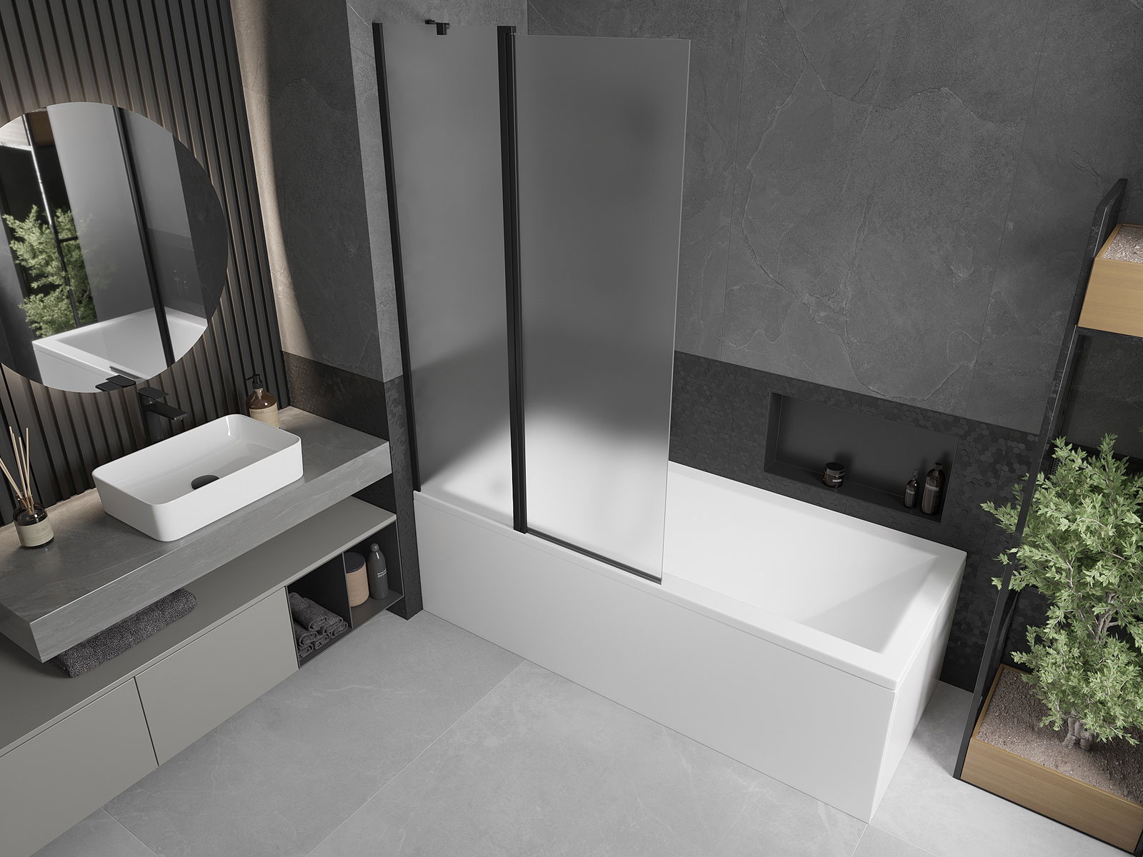 Der Bildschirm hat einen beweglichen Flügel mit der Möglichkeit des Faltens. Diese Lösung spart mehr Platz im Badezimmer und ermöglicht es Ihnen, den verbleibenden Platz frei zu nutzen, wenn wir den Badebereich nicht nutzen.