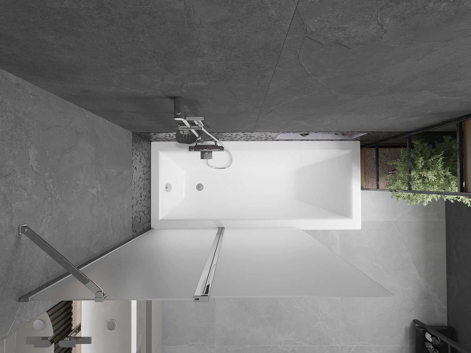 Effektiver Schutz gegen Wasser beim Baden. Der Bildschirm hat Dichtungen, die sich perfekt an das Glas des Glass und an der Badewanne der Badewanne anpassen. Eine funktionale Lösung, um Sicherheit und einfache Wartung zu gewährleisten.
