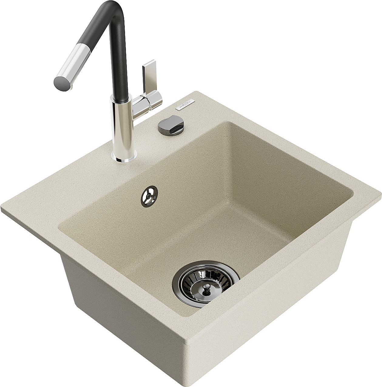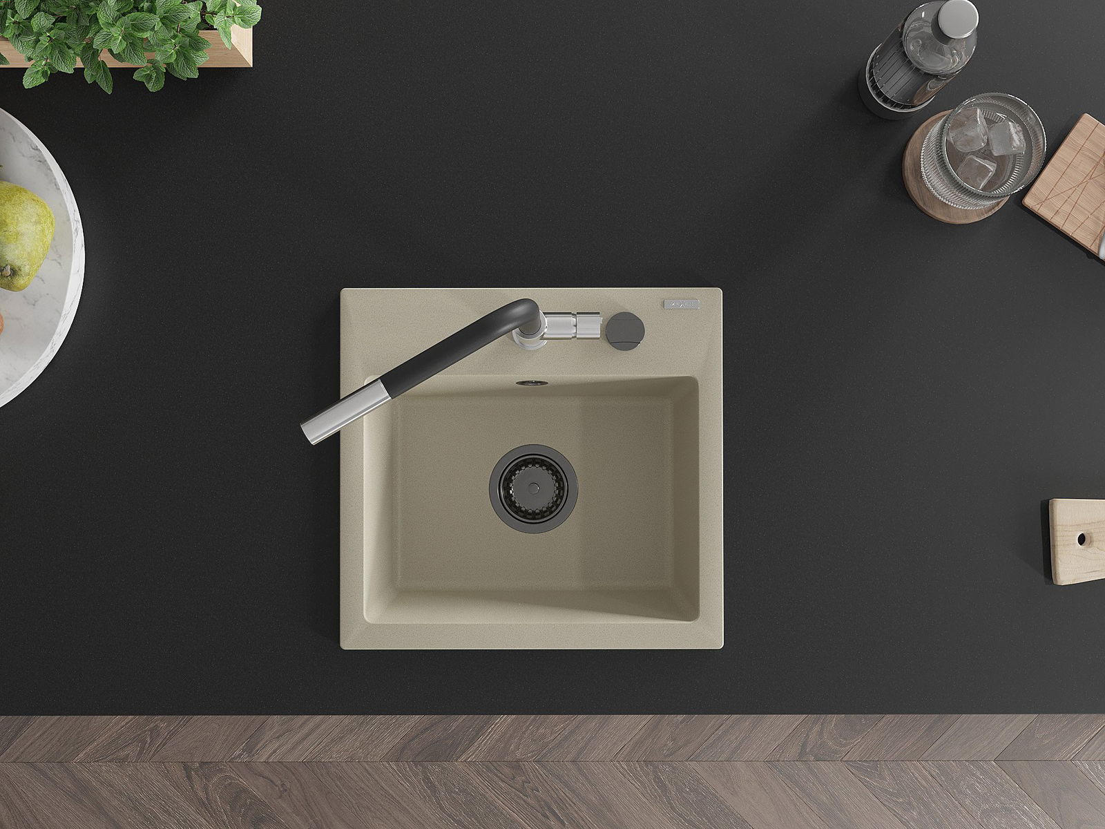 Mexen Milo Granitspüle 1-Becken mit Küchenarmatur Flora, Beige - 6505-69-670401-07-B