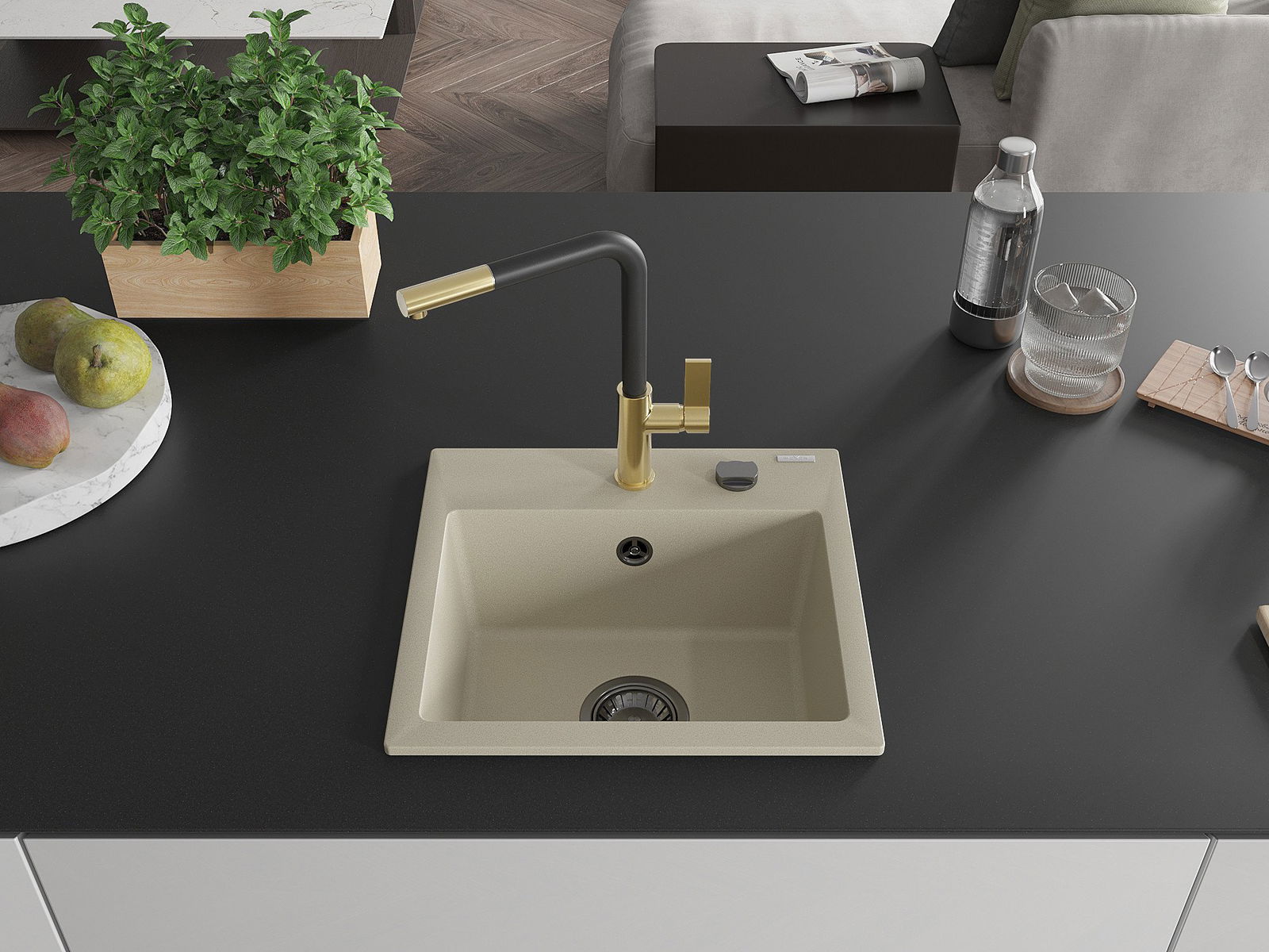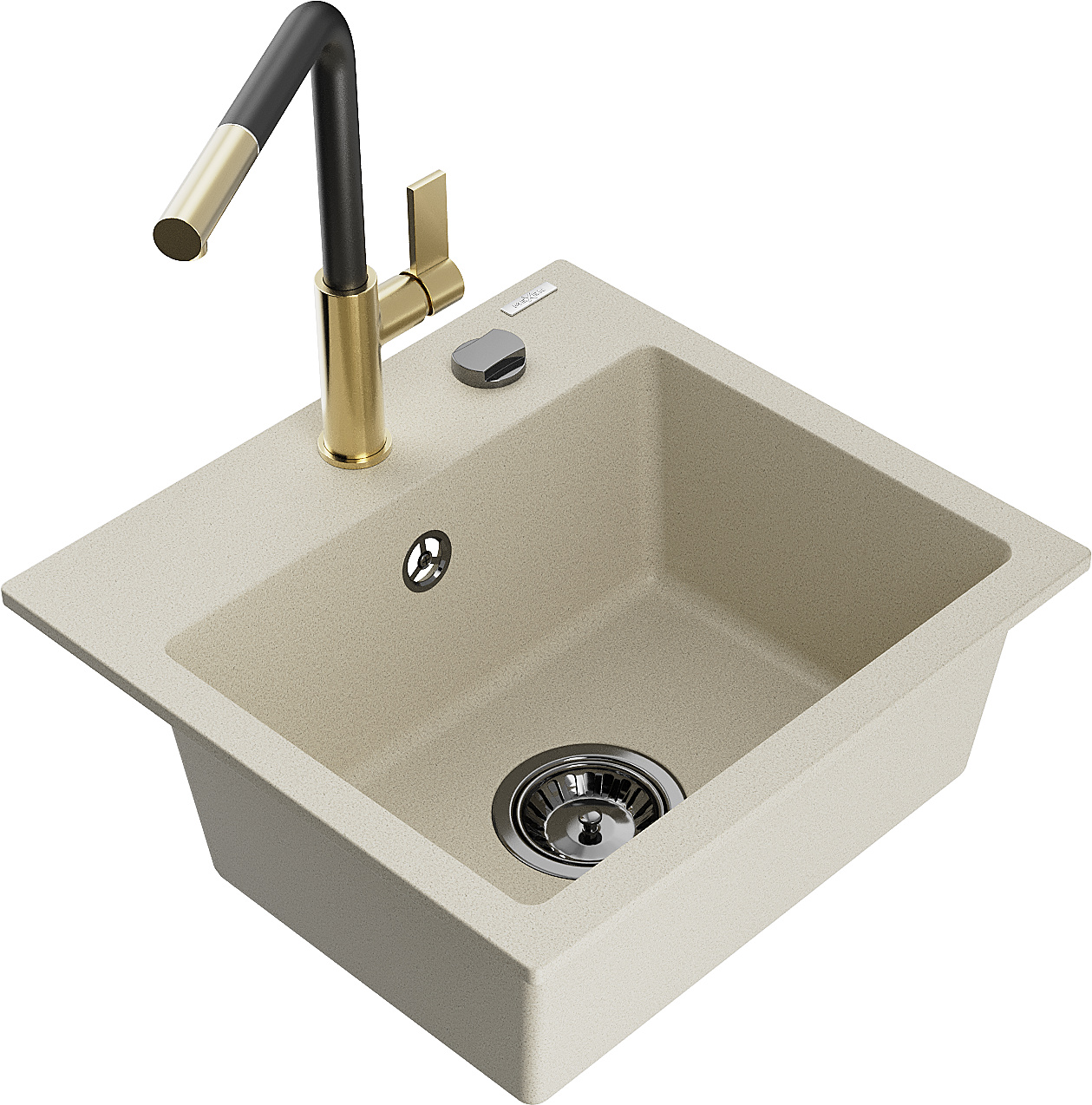 Mexen Milo Granitspüle 1-beckig mit Küchenarmatur Flora, beige - 6505-69-670401-57-B