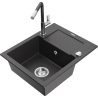 Die Spüle besteht aus hochwertigem Granit. Es ist eine elegante und vor allem praktische Ergänzung zu jeder Küche, unabhängig von ihrem Stil. Hohe Qualität und Granitdauer sorgen für eine langjährige Nutzung.