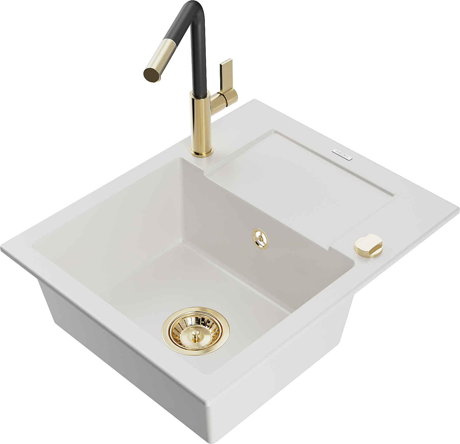 Mexen Enzo Granitspüle 1-beckig mit Abtropffläche und Küchenarmatur Flora, weiß - 6506-20-670401-57-G