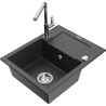 Die Spüle besteht aus hochwertigem Granit. Es ist eine elegante und vor allem praktische Ergänzung zu jeder Küche, unabhängig von ihrem Stil. Hohe Qualität und Granitdauer sorgen für eine langjährige Nutzung.