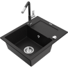Die Spüle besteht aus hochwertigem Granit. Es ist eine elegante und vor allem praktische Ergänzung zu jeder Küche, unabhängig von ihrem Stil. Hohe Qualität und Granitdauer sorgen für eine langjährige Nutzung.