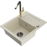 Die Spüle besteht aus hochwertigem Granit. Es ist eine elegante und vor allem praktische Ergänzung zu jeder Küche, unabhängig von ihrem Stil. Hohe Qualität und Granitdauer sorgen für eine langjährige Nutzung.