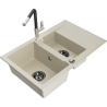 Die Spüle besteht aus hochwertigem Granit. Es ist eine elegante und vor allem praktische Ergänzung zu jeder Küche, unabhängig von ihrem Stil. Hohe Qualität und Granitdauer sorgen für eine langjährige Nutzung.