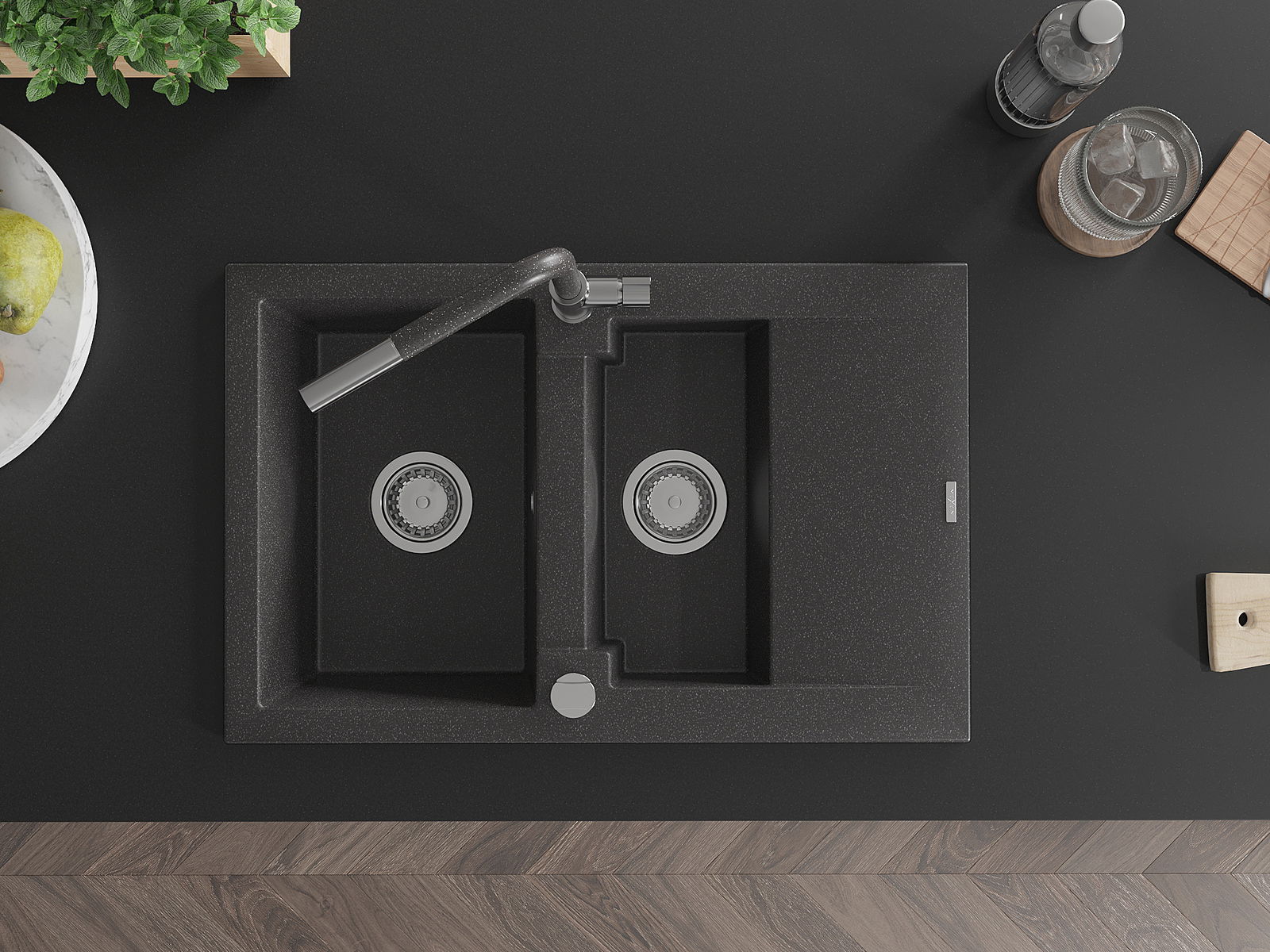 Dank des universellen Montagesystems ist die Spüle reversibel und der Abfluss kann links oder rechts auf der Theke montiert werden. Auf diese Weise können Sie die Seite einfach an Ihre Bedürfnisse und Bedingungen einstellen.