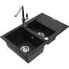 Die Spüle besteht aus hochwertigem Granit. Es ist eine elegante und vor allem praktische Ergänzung zu jeder Küche, unabhängig von ihrem Stil. Hohe Qualität und Granitdauer sorgen für eine langjährige Nutzung.