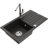 Die Spüle besteht aus hochwertigem Granit. Es ist eine elegante und vor allem praktische Ergänzung zu jeder Küche, unabhängig von ihrem Stil. Hohe Qualität und Granitdauer sorgen für eine langjährige Nutzung.