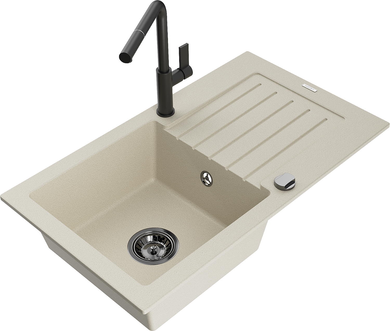 Mexen Pablo Granitspüle 1-beckig mit Abtropffläche und Küchenarmatur Flora, beige - 6510-69-670401-70-B