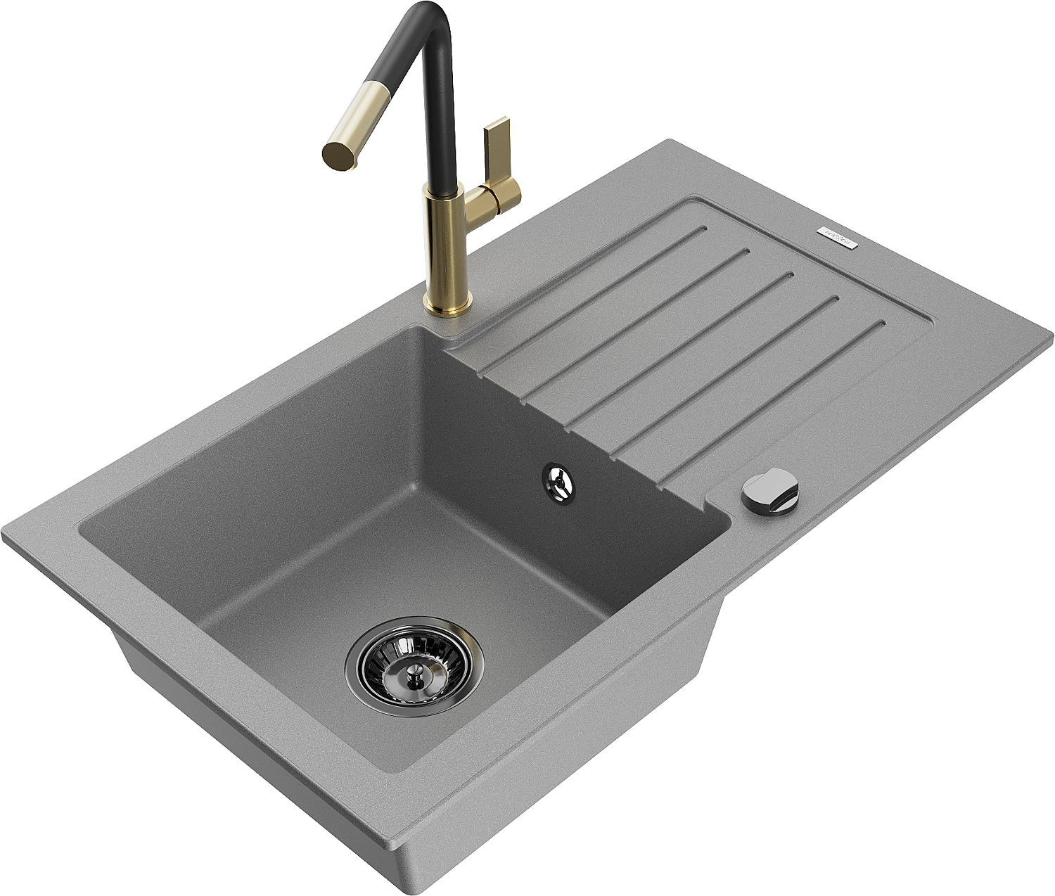 Mexen Pablo Granitspüle 1-beckig mit Abtropffläche und Küchenarmatur Flora, grau - 6510-71-670401-57-B