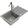 Die Spüle besteht aus hochwertigem Granit. Es ist eine elegante und vor allem praktische Ergänzung zu jeder Küche, unabhängig von ihrem Stil. Hohe Qualität und Granitdauer sorgen für eine langjährige Nutzung.