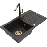 Mexen Pablo Granitspüle 1-Becken mit Abtropffläche und Küchenarmatur Flora, schwarz/silber metallic - 6510-73-670401-57-G