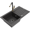 Die Spüle besteht aus hochwertigem Granit. Es ist eine elegante und vor allem praktische Ergänzung zu jeder Küche, unabhängig von ihrem Stil. Hohe Qualität und Granitdauer sorgen für eine langjährige Nutzung.