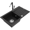 Mexen Pablo Granitspüle 1-Becken mit Abtropffläche und Küchenarmatur Flora, Schwarz/Gold Metallic - 6510-75-670401-07