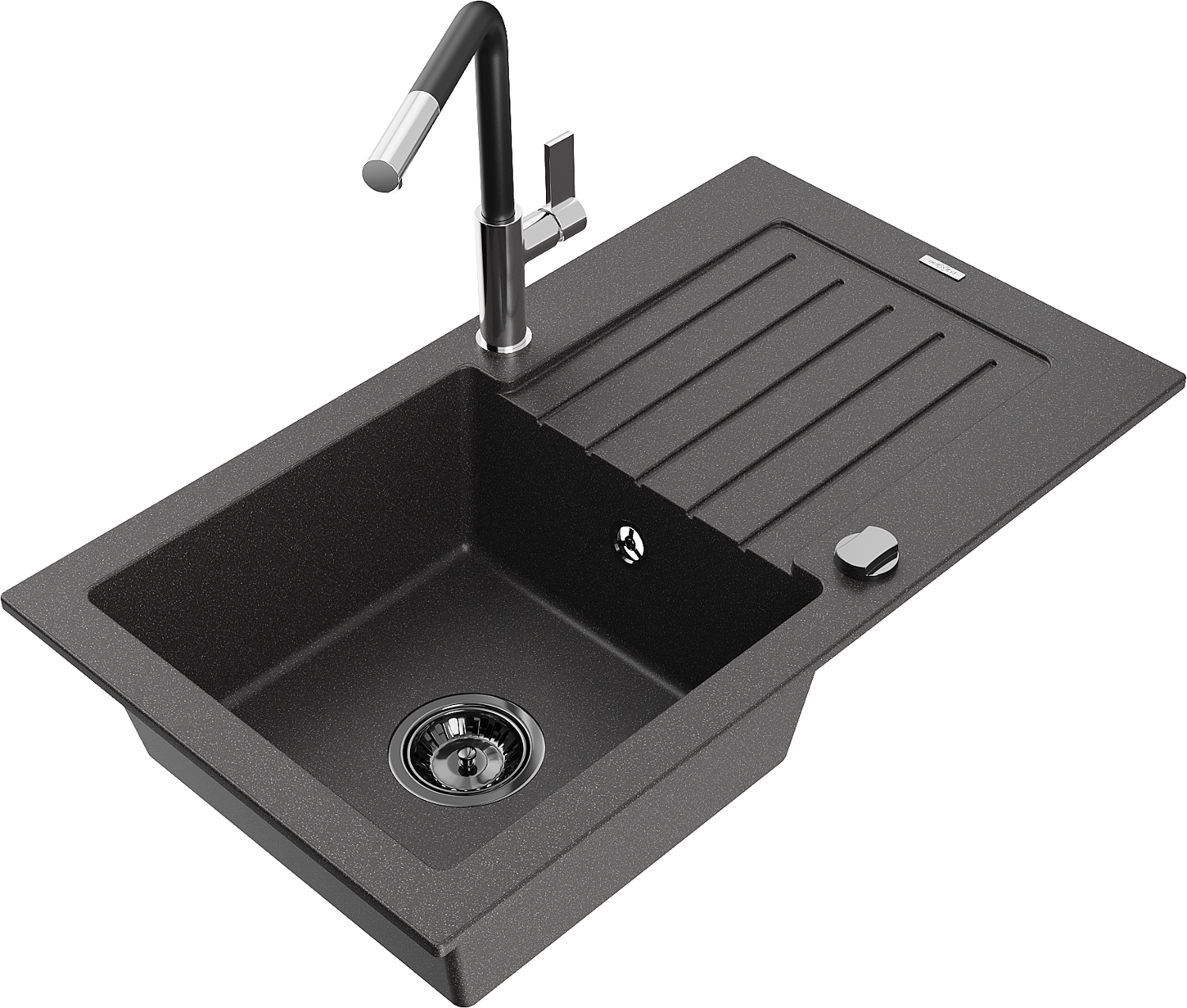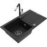 Mexen Pablo Granitspüle 1-Becken mit Abtropffläche und Küchenarmatur Flora, Schwarz Gesprenkelt - 6510-76-670401-07-B