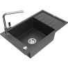 Mexen Elias Granitspüle 1-Becken mit Abtropffläche und Küchenarmatur Flora, schwarz - 6511-77-670401-00