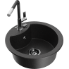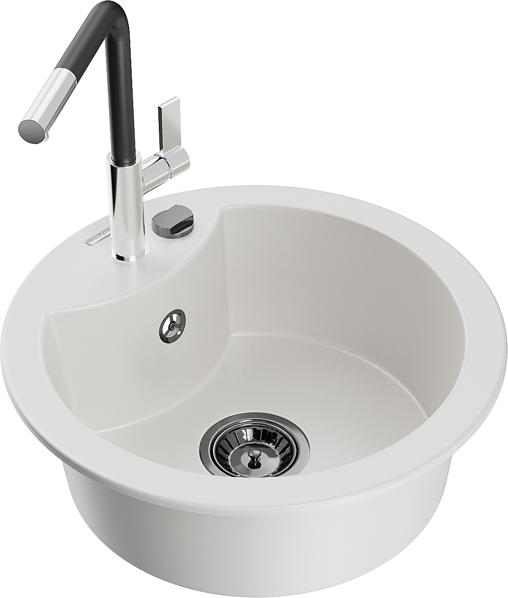 Die Spüle besteht aus hochwertigem Granit. Es ist eine elegante und vor allem praktische Ergänzung zu jeder Küche, unabhängig von ihrem Stil. Hohe Qualität und Granitdauer sorgen für eine langjährige Nutzung.