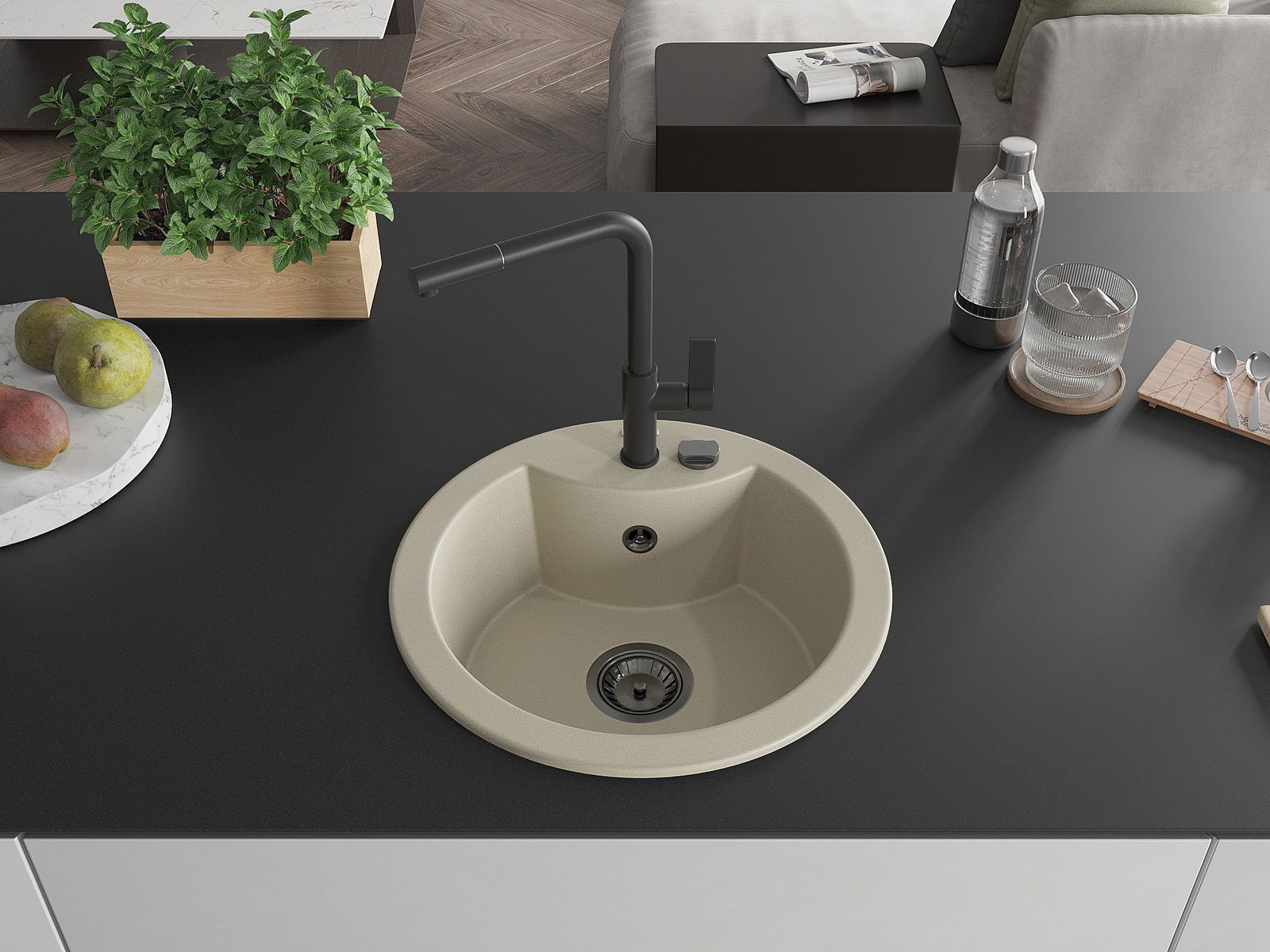 Mexen Diego Granitspüle 1-Becken mit Küchenarmatur Flora, beige - 6512-69-670401-70-B