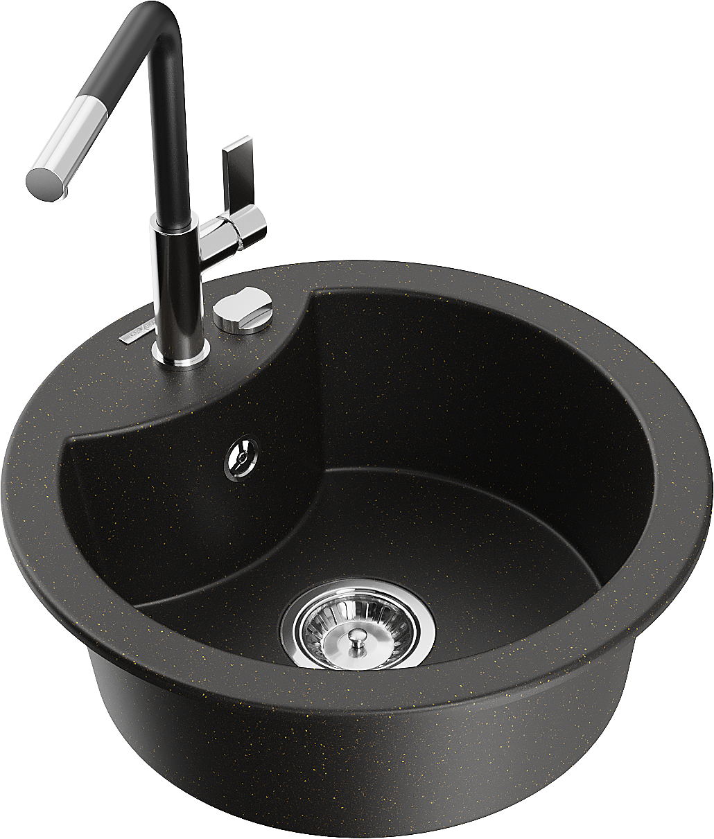 Die Spüle besteht aus hochwertigem Granit. Es ist eine elegante und vor allem praktische Ergänzung zu jeder Küche, unabhängig von ihrem Stil. Hohe Qualität und Granitdauer sorgen für eine langjährige Nutzung.