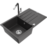 Mexen Bruno Granitspüle 1-Becken mit Abtropffläche und Küchenarmatur Flora, Grau - 6513-71-670401-07