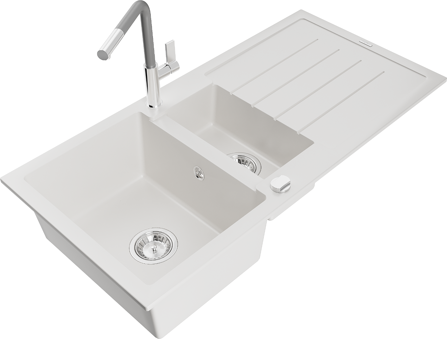 Mexen Andres Granitspüle 1,5-Becken mit Abtropfbereich und Küchenarmatur Flora, weiß - 6515-20-670401-06