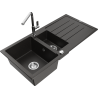 Die Spüle besteht aus hochwertigem Granit. Es ist eine elegante und vor allem praktische Ergänzung zu jeder Küche, unabhängig von ihrem Stil. Hohe Qualität und Granitdauer sorgen für eine langjährige Nutzung.