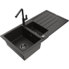 Die Spüle besteht aus hochwertigem Granit. Es ist eine elegante und vor allem praktische Ergänzung zu jeder Küche, unabhängig von ihrem Stil. Hohe Qualität und Granitdauer sorgen für eine langjährige Nutzung.
