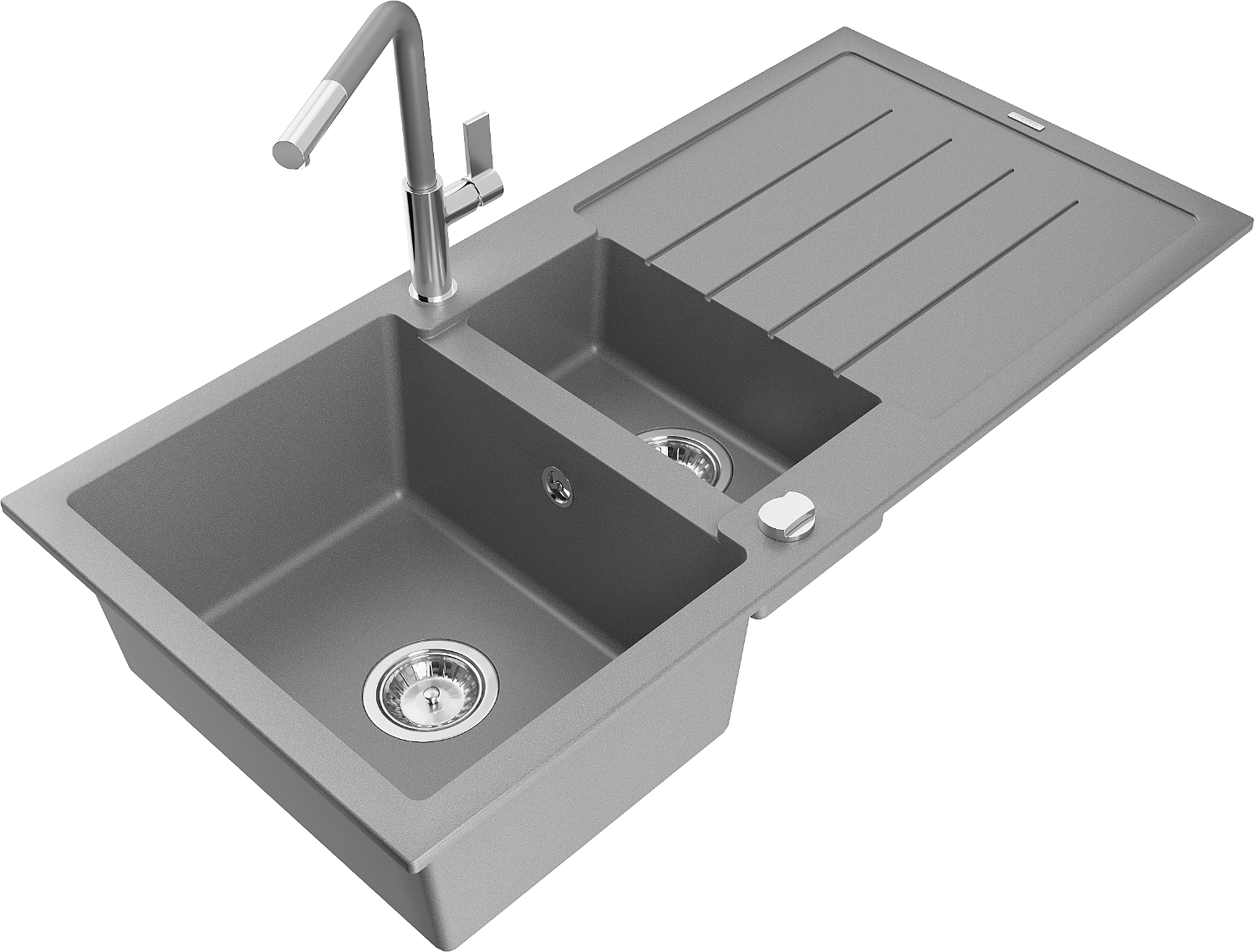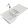 Mexen Andres Granitspüle 1,5 Becken mit Abtropffläche und Küchenarmatur Flora, grau - 6515-71-670401-06