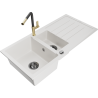 Die Spüle besteht aus hochwertigem Granit. Es ist eine elegante und vor allem praktische Ergänzung zu jeder Küche, unabhängig von ihrem Stil. Hohe Qualität und Granitdauer sorgen für eine langjährige Nutzung.