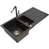 Mexen Andres Granitspüle 1,5-Becken mit Abtropffläche und Küchenarmatur Flora, gesprenkeltes Schwarz - 6515-76-670401-75-G