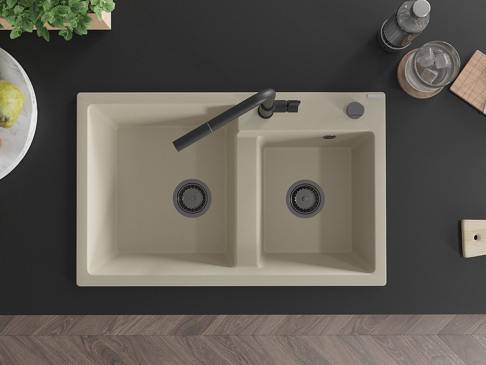 Mexen Tomas Granit-Spüle 2 Kammern mit Küchenarmatur Flora, beige - 6516-69-670401-70-B