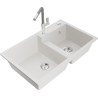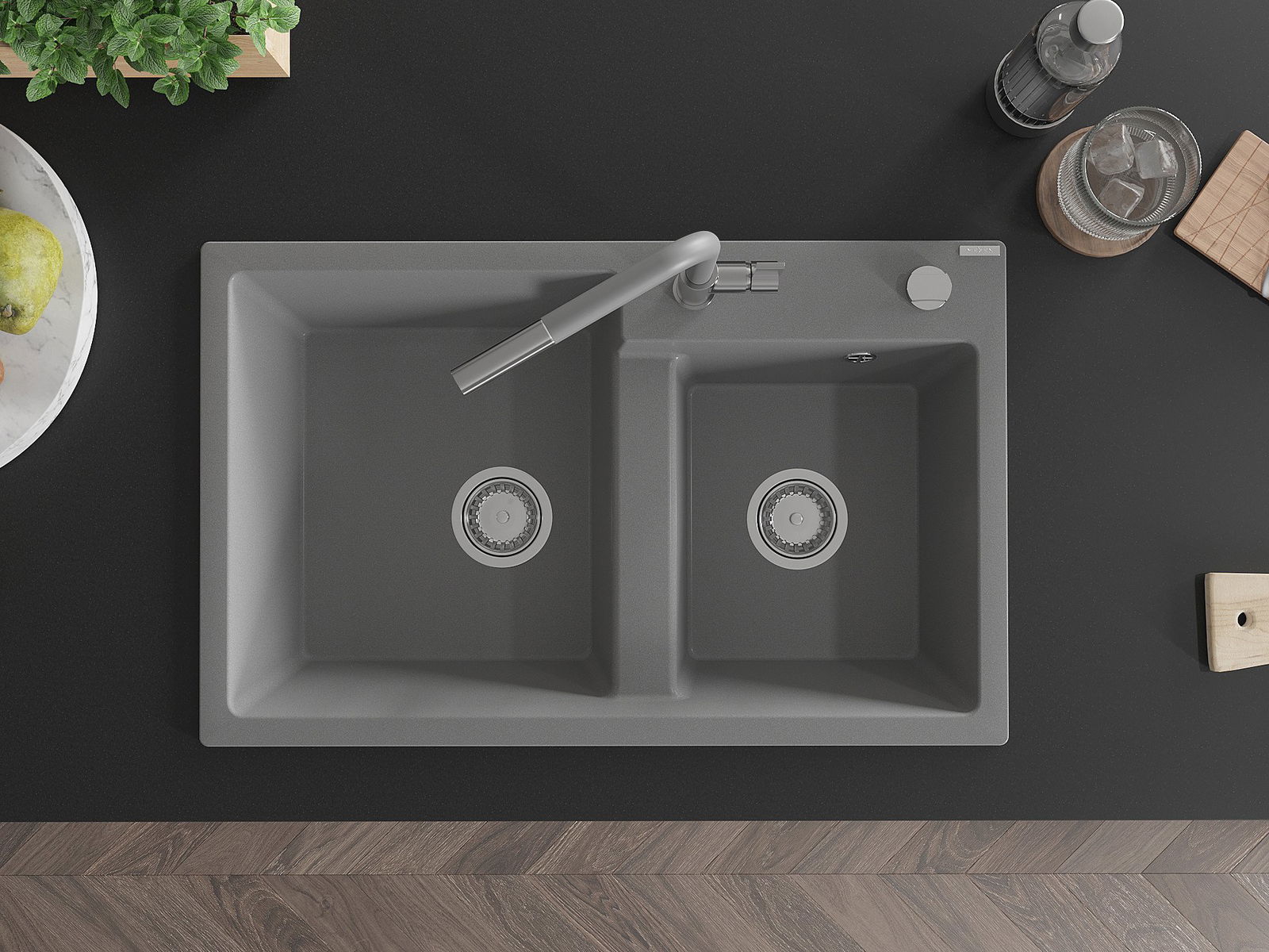 Mexen Tomas Granitspüle 2-Kammern mit Küchenarmatur Flora, grau - 6516-71-670401-06