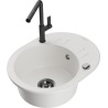 Die Spüle besteht aus hochwertigem Granit. Es ist eine elegante und vor allem praktische Ergänzung zu jeder Küche, unabhängig von ihrem Stil. Hohe Qualität und Granitdauer sorgen für eine langjährige Nutzung.