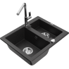Mexen Carlos Granitspüle 1,5-Becken mit Küchenarmatur Flora, grau - 6518-71-670401-00
