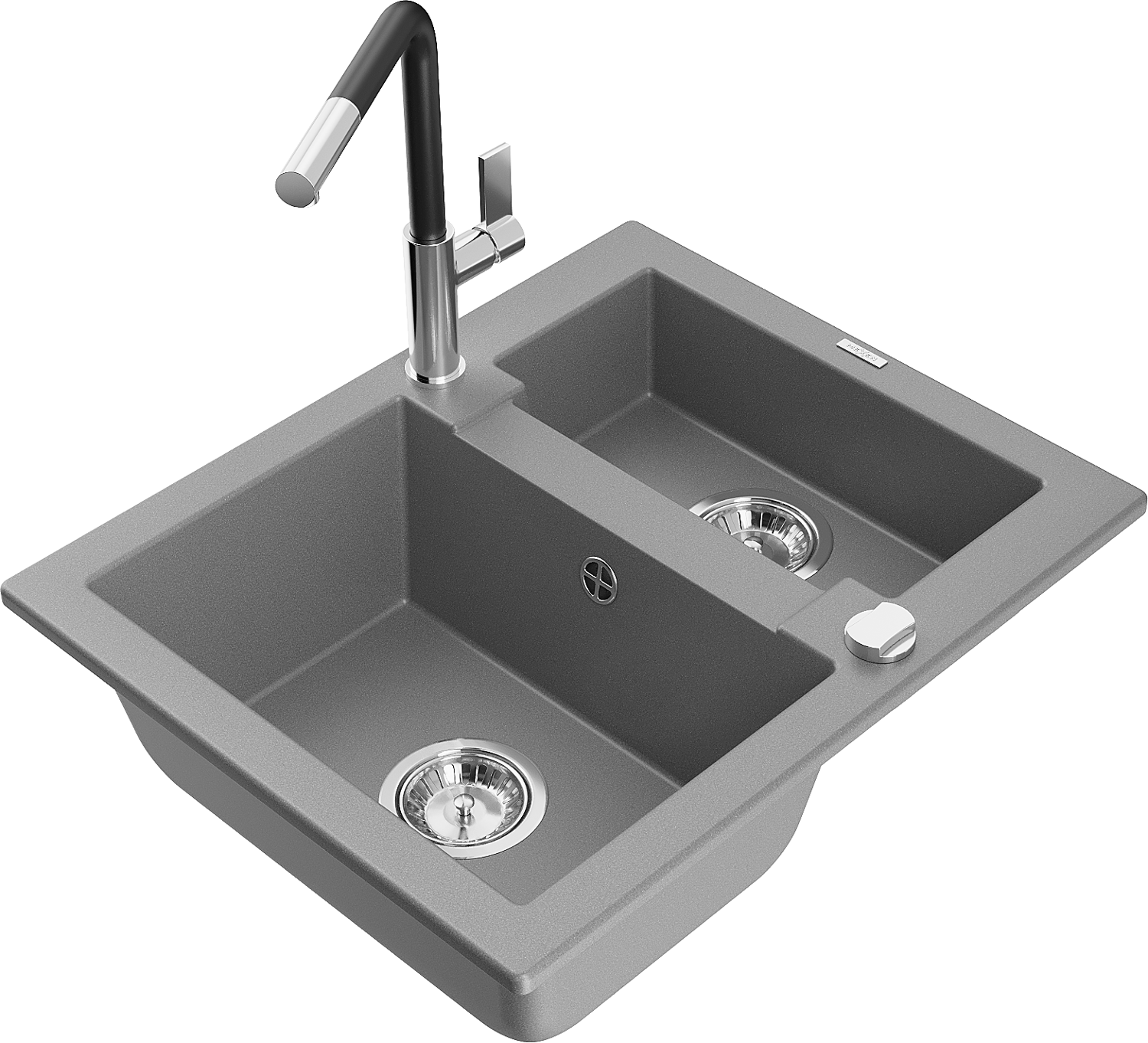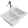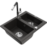 Mexen Carlos Granitspüle 1,5-Kammer mit Küchenarmatur Flora, grau - 6518-71-670401-07