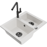 Die Spüle besteht aus hochwertigem Granit. Es ist eine elegante und vor allem praktische Ergänzung zu jeder Küche, unabhängig von ihrem Stil. Hohe Qualität und Granitdauer sorgen für eine langjährige Nutzung.