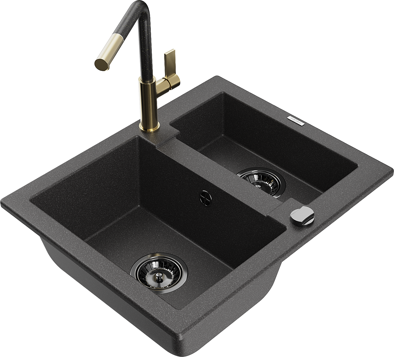 Mexen Carlos Granitspüle 1,5-fach mit Küchenarmatur Flora, schwarz gesprenkelt - 6518-76-670401-75-B