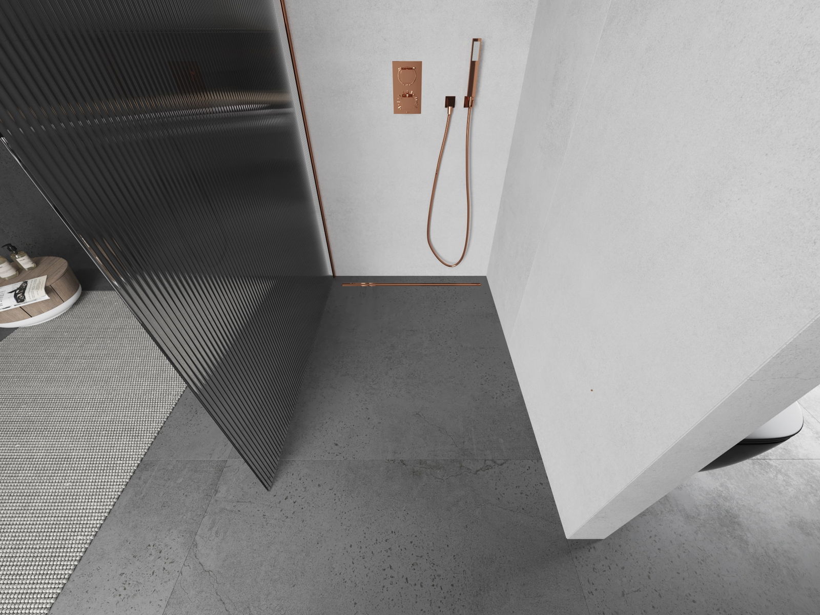 Mexen Kioto Duschwand 140 x 200 cm, Streifen 8 mm, Roségold - 800-140-101-60-09